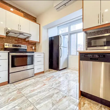 Upscale 2Br Retreat - Parking - 2 Queen Suites erbjuder ett kök utrustat med vattenkokare, kylskåp och ugn. En av tunnelbanestationerna i närheten av boendet är Atwater, cirka 5 minuters promenad bort.