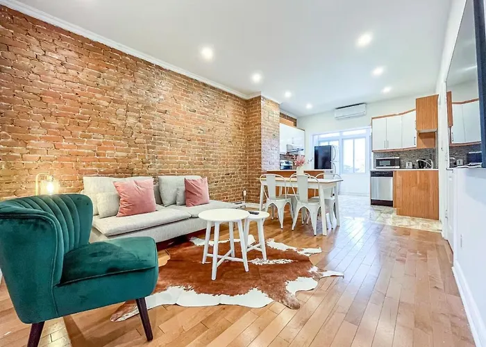 Upscale 2Br Retreat - Parking - 2 Queen Suites Montréal ger snabb tillgång till olika sevärdheter i stan, som Adonis Downtown, som ligger cirka 5 minuters promenad bort. Wi-Fi erbjuds för gästernas affärs- eller fritidsbehov.